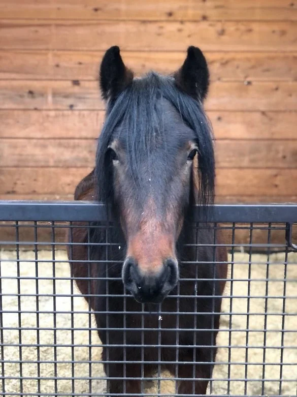 Comet came to us from Middlesex, Vermont where she was born on a farm owned by Jeni's sister. She is the daughter of a fell pony named Luna, who was also shipped over from England. Comet loves to go fast - when doing something she wants to do. She is very smart, loves to flip things over, cause trouble, and get trained with cookies. She is eager and willing. We believe her role in the lesson program will continue to grow. She is very sweet and cute, but be careful, she will easily tempt you to open her stall door and be a part of her great escape to the clover fields!